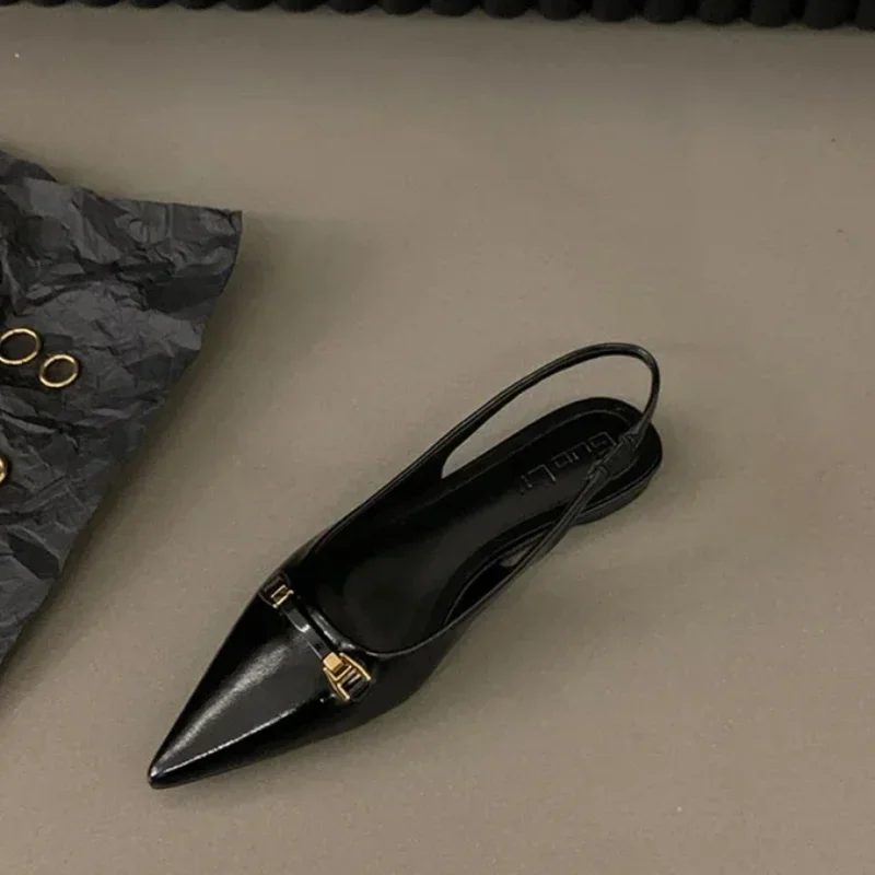 2025 New Summer Women’s Dress Shoes Patent Leather Slip on Pointed Toe Sandals Buckle Slingbacks Mid Heels Pumps Sandalias Mujer